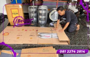 Belajar Drumband sudah terbiasa mengirim perlengkapan ke luar pulau. Tim mengatur proses pengemasan dengan hati-hati, menggunakan karton tebal, busa pelindung, dan peti kayu.
