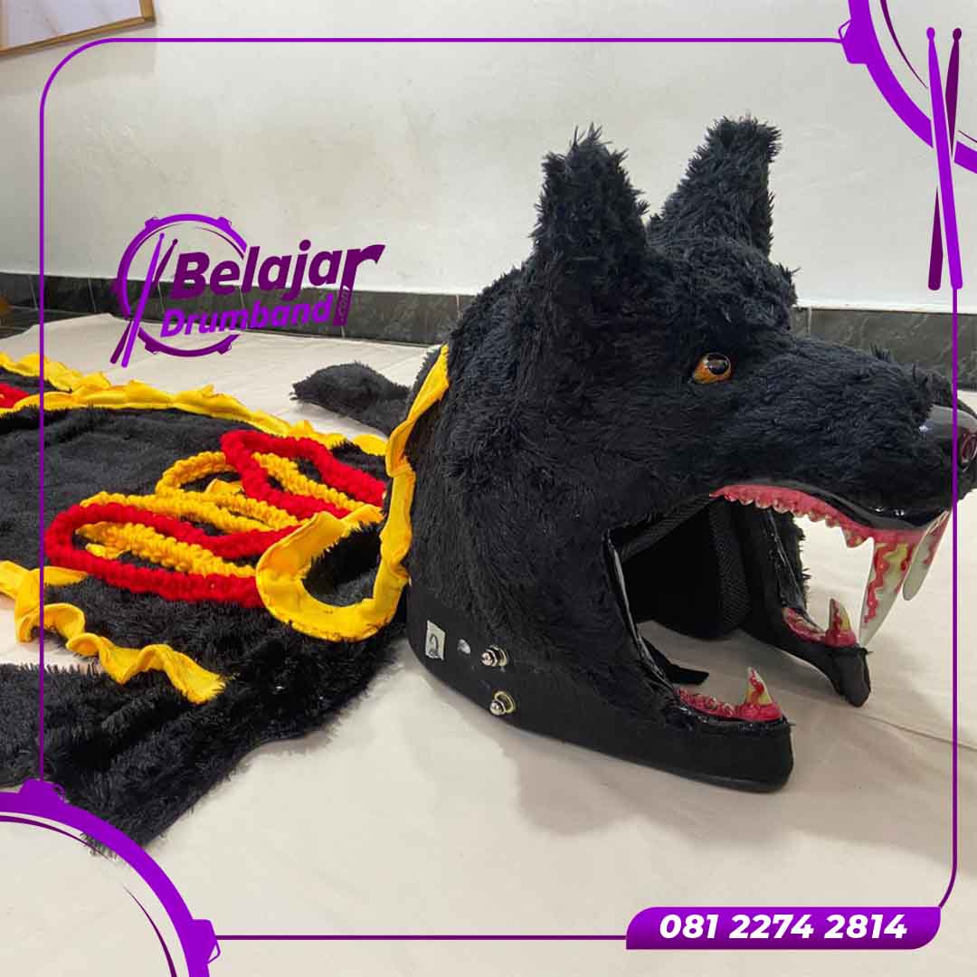 Inspirasi Desain Seragam Drumband dengan Maskot Serigala Hitam